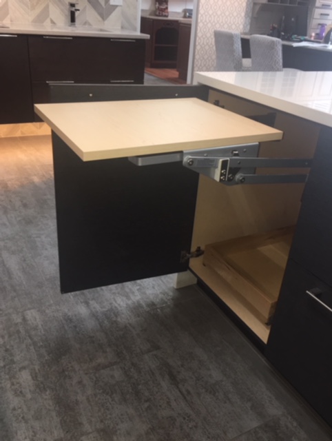 When planning your kitchen cabinet layout, it’s a good idea to make note of your current appliances, dinnerware and other kitchen gadgets to get a sense of how you’d like to store them. Then try making a wish list of storage accessories for your semi-custom cabinets to make sure you’re designing your new kitchen with a place for everything. Not sure what you need? Just ask! Sometimes it’s possible to order inserts and storage extras after the fact, so be sure you understand your options when you sit down to order your new cabinets.