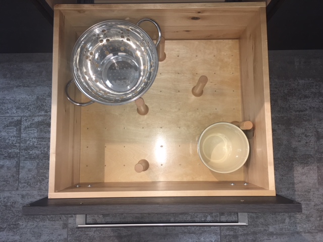 - Deep Drawers: Consider replacing some of your standard base cabinets with deep drawers instead. They save you the trouble of stooping down to find things, and you can even add a peg board or other dividers to further customize the space for everything from casserole dishes to colanders.